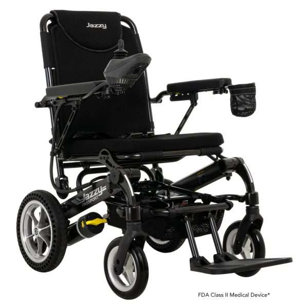 Jet set with confidence in the versatile design of your Jazzy Passport. It’s extremely portable and folds neatly to be stowed away in a car trunk or, yes, on a plane. Folded, its dimensions are a compact 31″ x 23.5″ x 16″. It weighs just about 60 pounds depending on battery size.